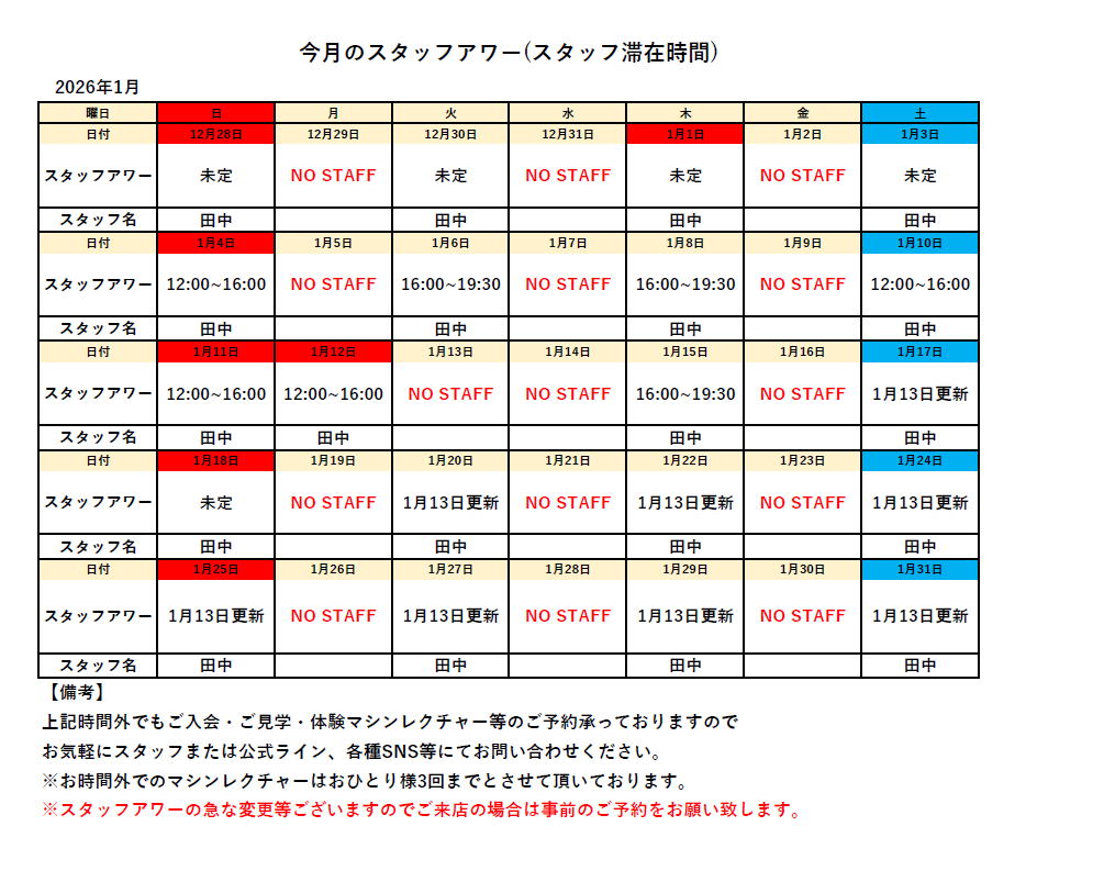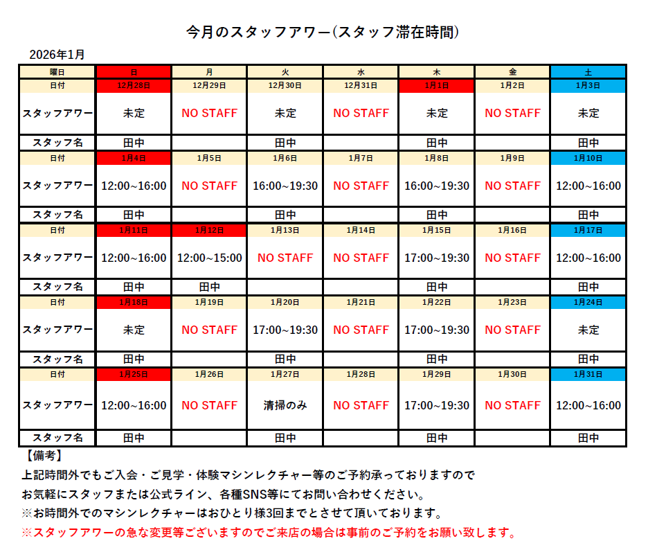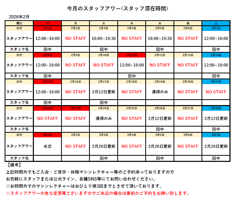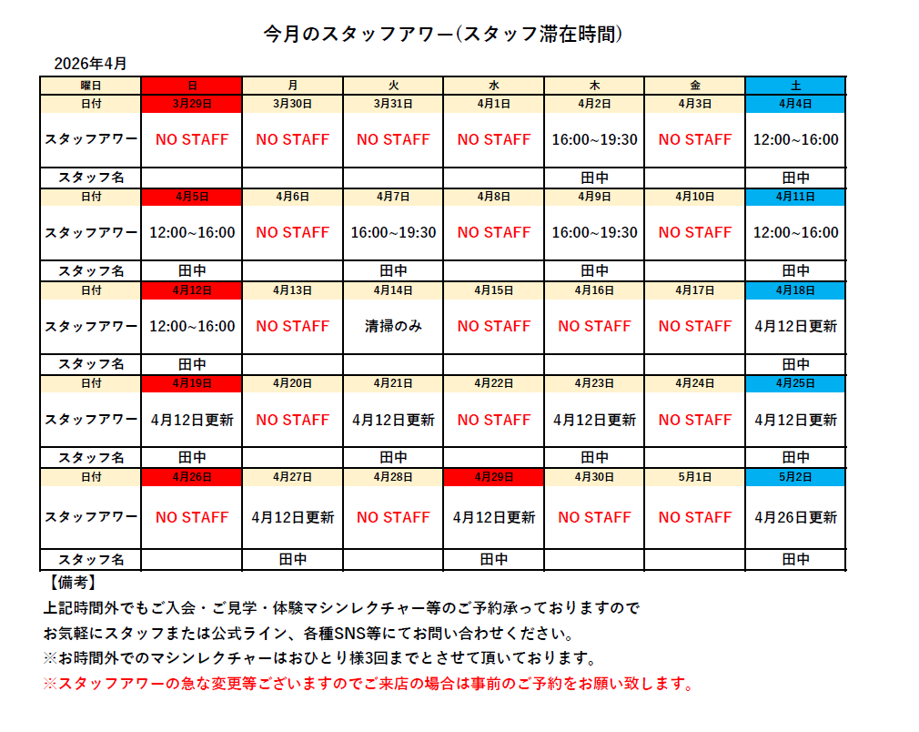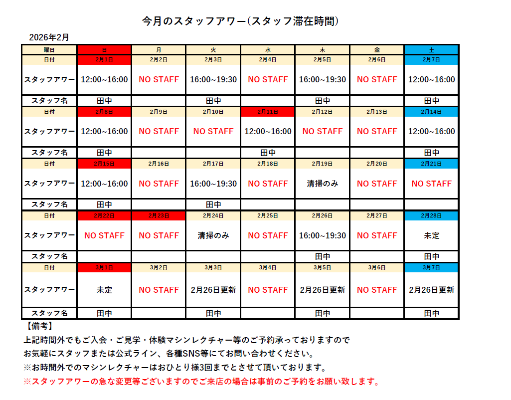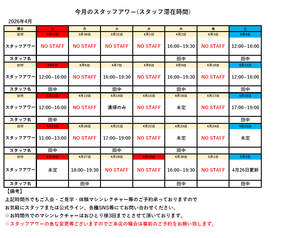 今月のスタッフアワー(スタッフ滞在時間)